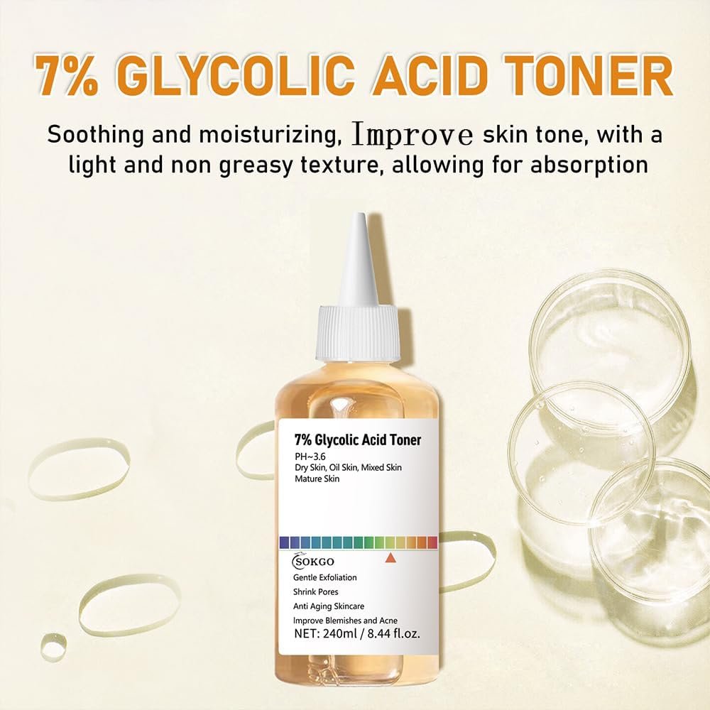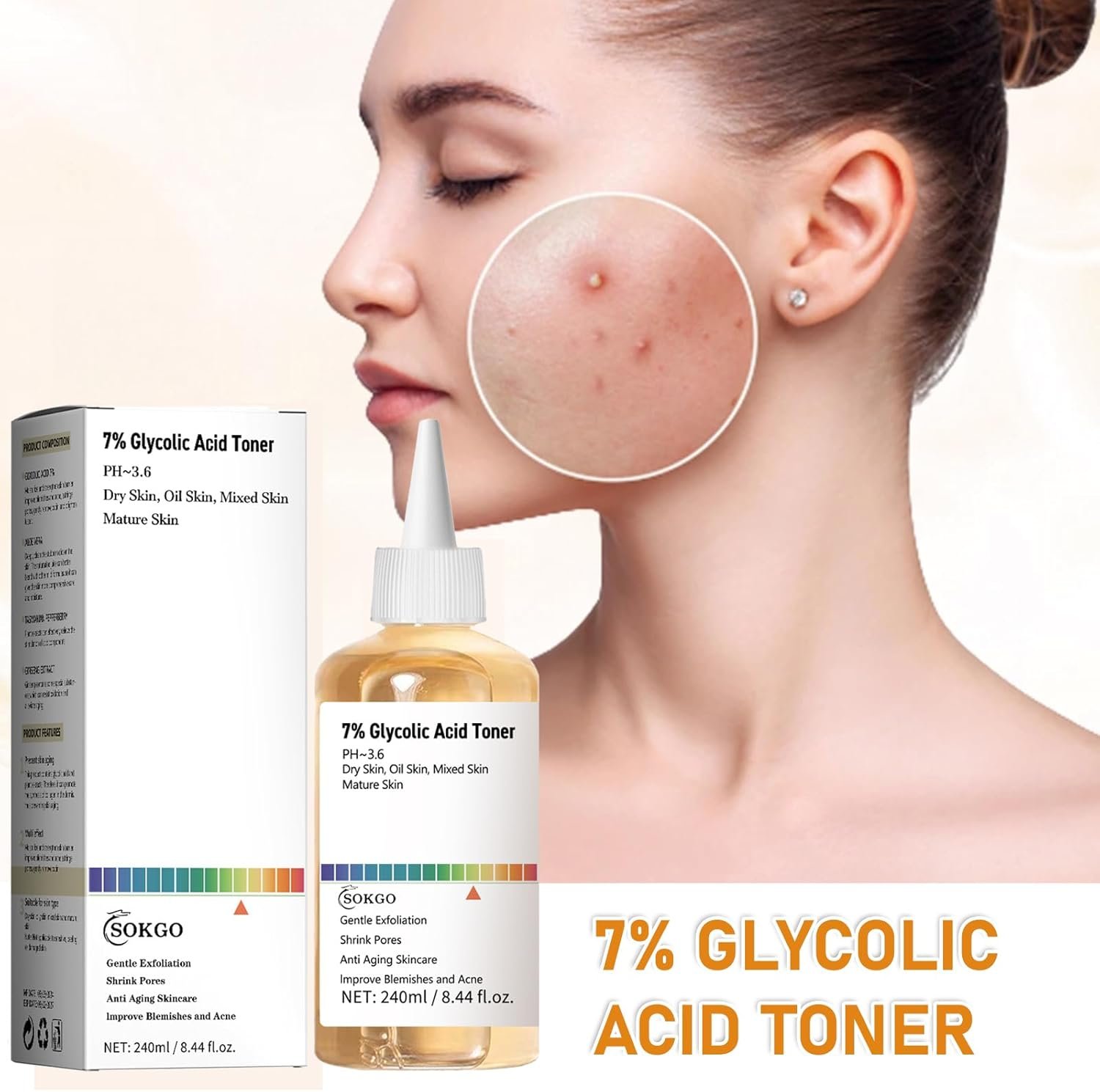 7% Glycolic Acid Exfoliating Toner, Exfoliating Facial Toner, Pore Minimizing Toner, Smooth Skin, Even Tone, Hydrating Formula