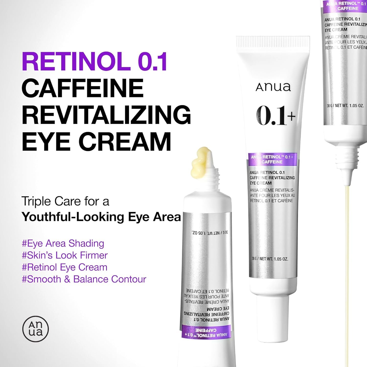 ANUA Retinol 0.1 Caffeine Revitalizing Eye Cream, Under Eye Cream For Hydration, Glow Up Eye Contour, Niacinamide, Retinol For Face, Night Cream For Eye Care, Korean Skin Care (30g/1.05oz)