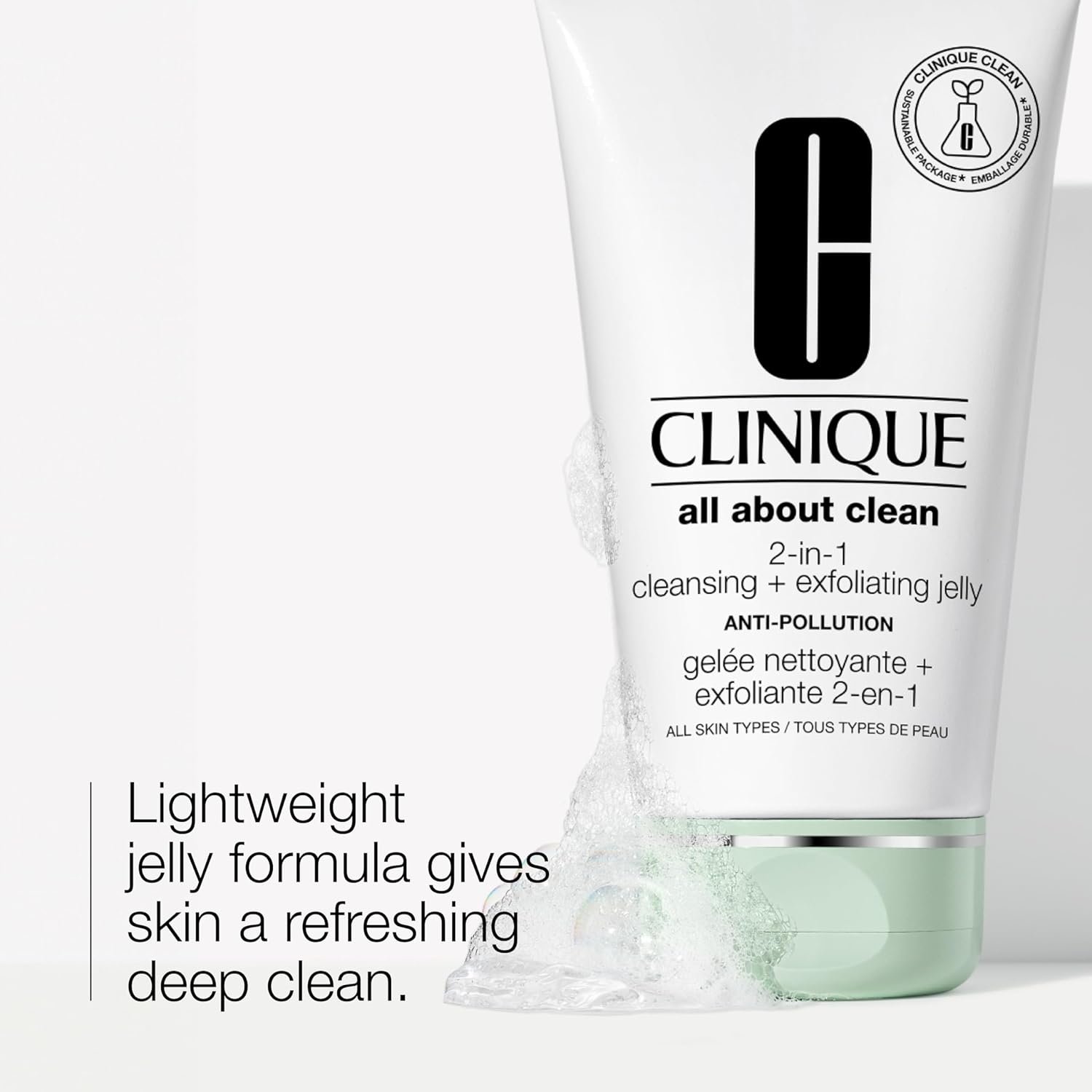 Clinique All About Clean 2-in-1 Cleansing + Exfoliating Jelly, Face Wash & Exfoliator With Salicylic Acid For All Skin Types, 5 Fl Oz