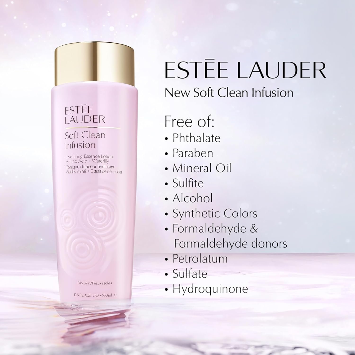 Estee Lauder Soft Clean Infusion Hydrating Skin Essence Face Lotion Toner with Amino Acid + Waterlily, 13.5 Fl Oz