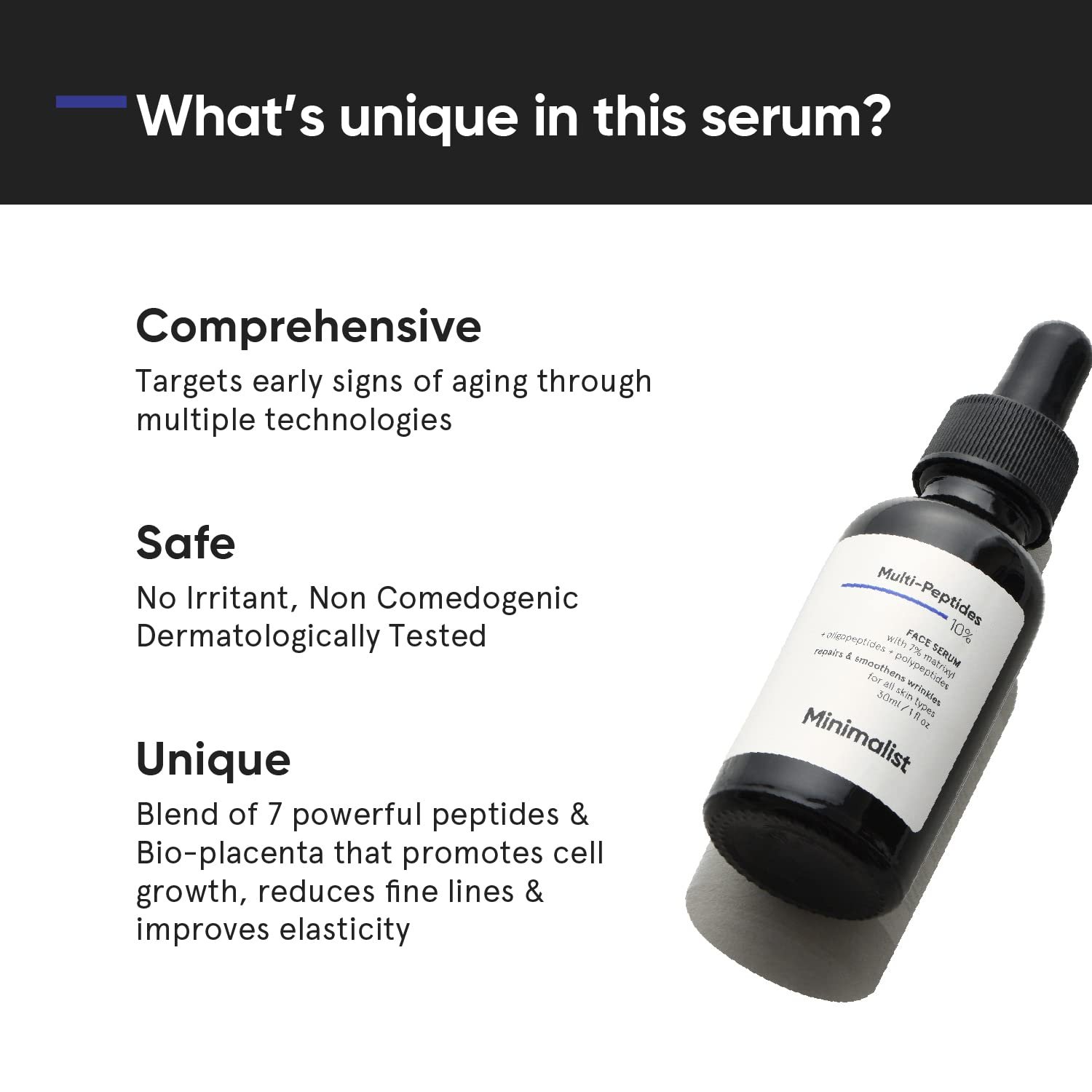 Minimalist Multi Peptide Night Face Serum for Anti Aging with Collagen Boosting | Reduces Wrinkles | Hydrating Serum With 7% Matrixyl 3000 & 3% Bio-Placenta | For Women & Men | 1 Fl Oz / 30 ml