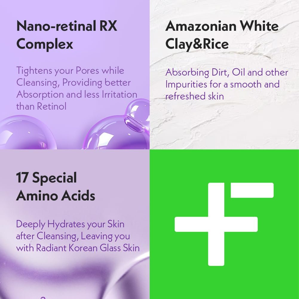 Nosca9 Deep Pore Cleansing Foam for Sensitive Skin | Korean Skincare Face Wash with 17 Amino Acids, White Clay & Patented Pore-Shrinking Ingredient | Deep Cleansing & Moisturizing (5.07 fl. oz)