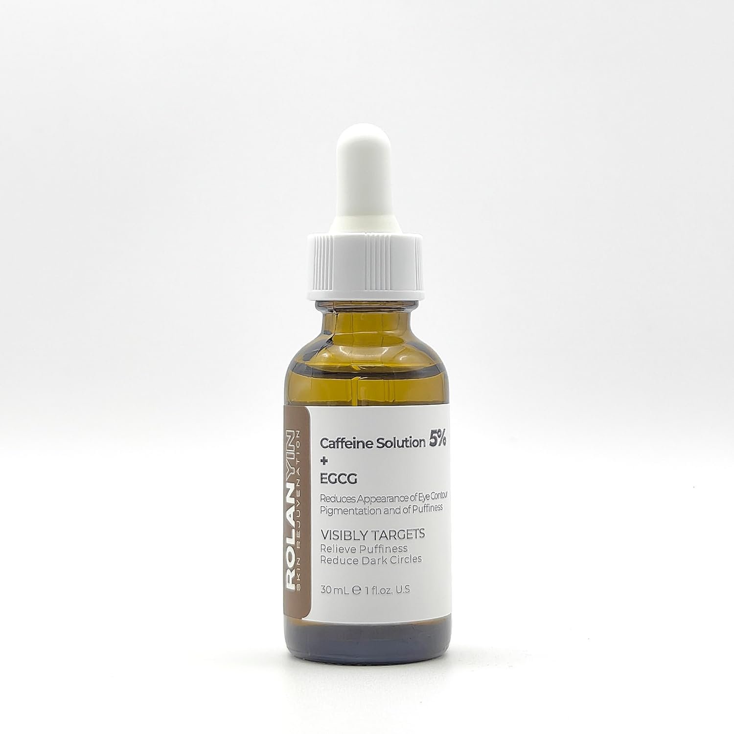 ROLANYIN Caffeine Solution 5% + EGCG Eye Serum for Puffiness Reduction Dark Circle Treatment Hydrating Firming and Soothing Anti Aging Nourishing Formula Eye Skin Care 1 Fl.Oz