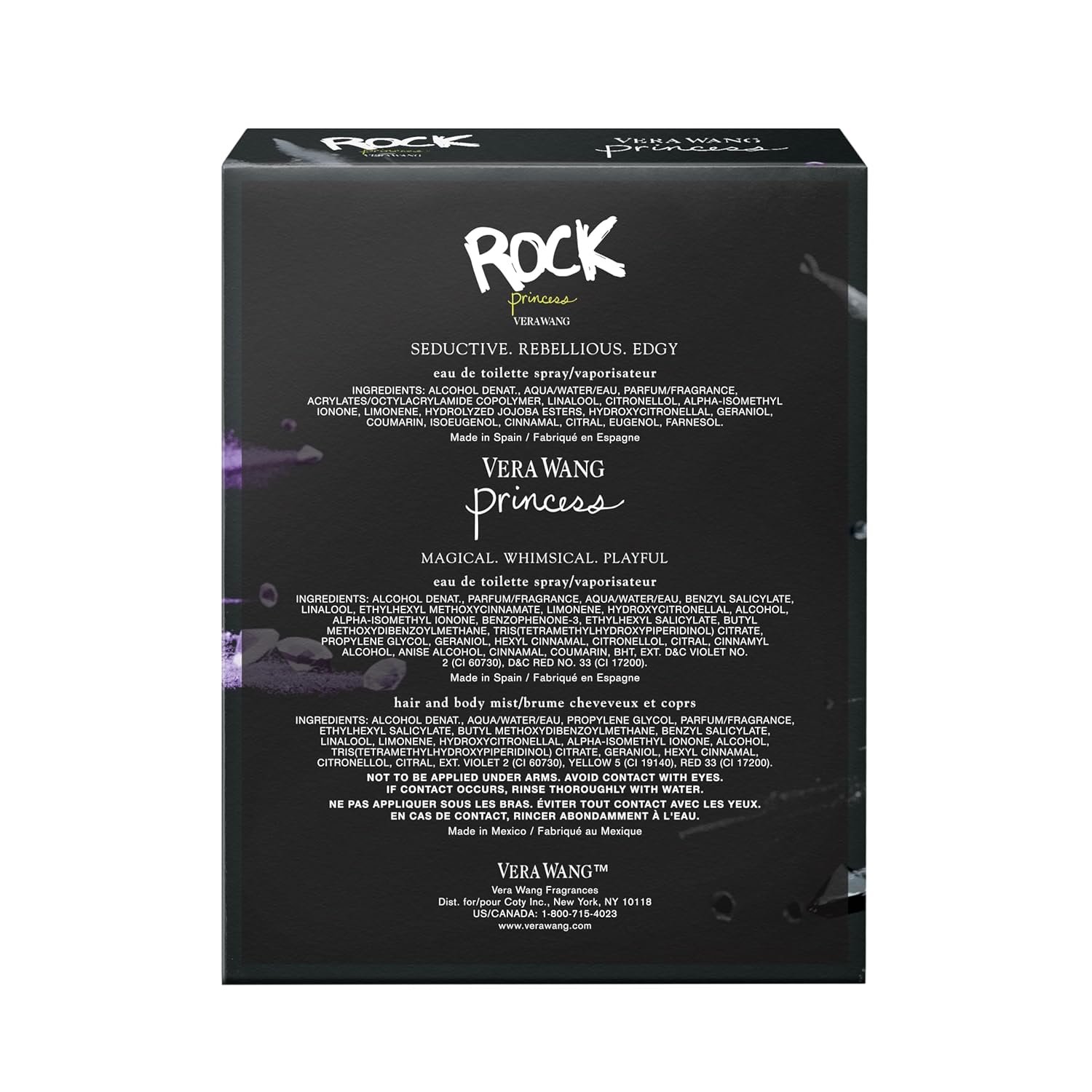 Vera Wang Princess + Rock Princess, Body Mist and Eau de Toilette Spray (2) 3 Piece Gift Set, Notes of Peach, Jasmine, and Vanilla, Women’s Fragrance, Long Lasting, Everyday Fragrance